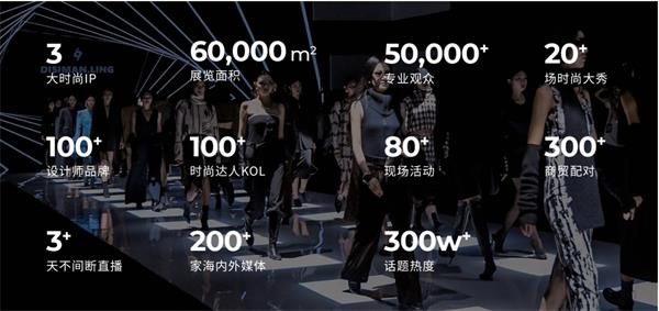 展会面积:60,000m² 、 专业观众:50,000+ 时尚大秀:20+ 设计师品牌:100+