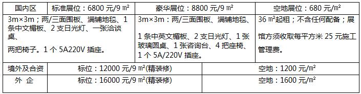 ※展位费用及展位设施