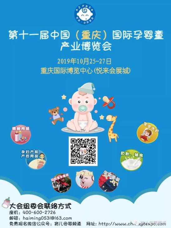 2019年全国孕婴童行业颇具影响力的行业盛会——第十一届中国(重庆)国际孕婴童产业博览会将于2019年10月25日至27日在重庆国际博览中心(悦来会展城)盛大召开。